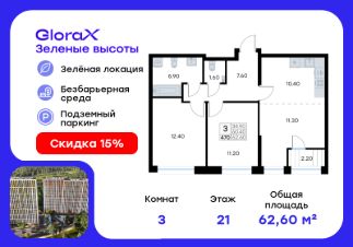 Продается 3-комн. квартира на 23-м этаже в жилом квартале GloraX Зелёные высоты — проекте в тихой зелёной локации. Общая площадь квартиры 62,60 кв. м, из которых 34,90 кв. м включая 34,90 кв. м жилого пространства и 10,40 кв. м кухни. Номер квартиры - 492.Преимущества квартиры:просторная 2 к.кв., лоджия.Преимущества проекта:• Идеальное сочетание городской и загородной жизни• Сдаем в 2025 году• Уютный зелёный район с развитой инфраструктурой• Великолепные виды на Вечнозеленый сквер и лесопарк на 150 Га• Видеонаблюдение, IP-домофон, Wi-Fi на территории,• Дизайнерские входные группы• Безбарьерная среда, колясочные, туалеты на 1 этаже, лапомойки• Эксклюзивное благоустройство территории • Подземный паркинг на 235 машино-мест с лифтом на жилые этажи• Индивидуальные кладовые от 3 до 7 кв. м• Черновая отделка для реализации любых дизайнерских идейGloraX Зелёные высоты — современный жилой проект, сочетающий преимущества городской и пригородной жизни. Комплекс тщательно продуман для максимального удобства и обеспечения безопасности жителей. Квартал расположен в зеленом, живописном и активно развивающемся районе Зеленый Угол, вдали от серой массовой застройки. Жители GloraX Зелёные высоты смогут насладждаться прогулками в Вечнозелёном сквере или лесопарке. В непосредственной близости находятся остановки общественного транспорта и автомобильный подъезд со стороны Нейбута. Скоро также появится выездом на трассу Де-Фриз-Седанка, что обеспечит быстрый доступ в любую часть города и пригород.Проект включает 2 корпуса, каждый из которых спроектирован с акцентом на комфорт, безопасность и современный образ жизни.В комплексе предусмотрен подземный паркинг на 235 машиномест с доступом прямо с жилых этажей. Паркинг оборудован современными системами видеонаблюдения, контроля въезда-выезда и пожаротушения. Цокольный этаж здания отведен под индивидуальные кладовые площадью от 3 до 7 квадратных метров, которые можно использовать для хранения сезонных вещей. Доступ к кладовым - на лифте с жилых этажей.Территория жилого квартала благоустроена и включает игровые зоны и спортивные площадки для детей различных возрастных групп, уютные зоны отдыха со скамейками и универсальную воркаут-площадку для активного досуга.В шаговой доступности располагаются все необходимые объекты социальной инфраструктуры.Узнайте больше в отделе продаж — выберите свою квартиру в GloraX Зелёные высоты уже сегодня!