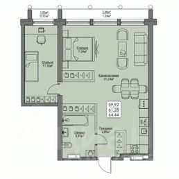 Комфорт, продуманный до мелочейГрамотное зонирование кухни-гостиной создаёт ощущение двух отдельных пространств — для кулинарных экспериментов и отдыхаУютная мастер-спальня с личным санузлом, выделенным местом под шкаф и лоджией обеспечивает комфортное личное пространство для отдыхаФункциональная детская идеально подходит для организации спального и рабочего места, а благодаря месту под систему хранения поддержание порядка не составит трудаОтдельный санузел с ванной и местом под стиральную машину делает жизнь семьи максимально удобной, а утренние сборы оптимизированнымиПросторная прихожая обеспечивает комфортную навигацию между всеми зонами квартиры