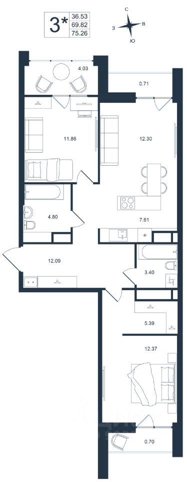 Балкон 4,2 кв.м. с видом на закат для долгих вечеров и уютных посиделок Просторный коридор 5,3 кв.м. с отдельной комнатой под гардероб для освобождения пространства Санузел 4,6 кв.м. с местом под стиральную машину Кухня-гостиная 15,3 кв.м. с выходом на балкон для шумных компаний и тёплых встреч Спальня 11,7 кв.м. с пространством под хранение вещей и рабочей зоной