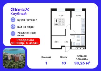 Продается 1-комн. квартира на 1-м этаже в жилом комплексе GloraX Тухачевского — современном проекте нового формата в престижном районе Владивостока. Общая площадь лота составляет 37,82 кв. м, из которых 14,00 кв. м отведено под жилую и 11,52 кв. м под кухонную зону. Номер квартиры - 190.Преимущества квартиры:однокомнатная квартира, гардеробная.Преимущества проекта:• Панорамный вид на Амурский залив и зелёные сопки• Удачное расположение и транспортная доступность: Первореченский район, 20 минут до центра города• Закрытая охраняемая территория с доступом только для жителей• Эксклюзивное благоустройство: продуманное зонирование, игровые и спортивные площадки, арт-инсталляция, Тайный сад• Безбарьерная среда, видеонаблюдений, Wi-Fi на территории• Премиальный дизайн входных групп реcепшн и лаунж-зоной• Лапомойки, колясочные и туалеты на первом этаже• Подземный паркинг на 449 машиномест с доступом на лифте с жилых этажей• Индивидуальные кладовые на цокольном этаже от 2 до 10 м2GloraX Тухачевского — это городское пространство нового формата, которое позволяет современным горожанам находить все необходимые атрибуты комфортной жизни внутри своего жилого комплекса. Весь комплекс спроектирован так, чтобы жить здесь было удобно и безопасно: светлые лаунж-зоны и ресепшн на входах в жилые корпуса, эксклюзивный дизайн мест общего пользования и придомовой территории, круглосуточная охрана, видеонаблюдение и даже детский сад в одном из корпусов все, что необходимо современному городскому жителю. GloraX Тухачевского находится в одном из самых престижных районов города с хорошей, давно сформировавшейся инфраструктурой и отличной транспортной доступностью. Отсюда легко добраться до центра города, других районов и даже пригорода как на собственном транспорте, так и на общественном. Квартал имеет прямой выезд на ул. Тухачевского, а рядом с комплексом расположена автобусная остановка на несколько маршрутов.Проект состоит из 3 монолитных корпусов, объединенных единым стилобатом. В комплексе предусмотрены: подземный паркинг с лифтом на жилые этажи, кладовые для хранения, благоустроенный двор без машин, детские и спортивные площадки, зоны для отдыха и прогулок.Эксклюзивный проект благоустройства территории разработан одной из лучших студий ландшафтного дизайна DEREVOPARK с фокусом на комфорт и удобство для всех жителей комплекса.Вся необходимая инфраструктура — магазины, школы, детские сады, остановки общественного транспорта — находится рядом.Узнайте подробности и подберите свою квартиру в GloraX Тухачевского — в отделе продаж уже сегодня.Цена указана при 100% оплате или стандартной ипотеке. Узнайте подробности в Отделе продаж.