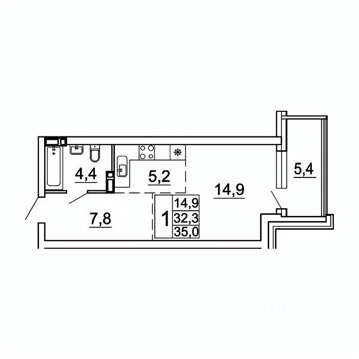 35 м² · Этаж 7 из 24