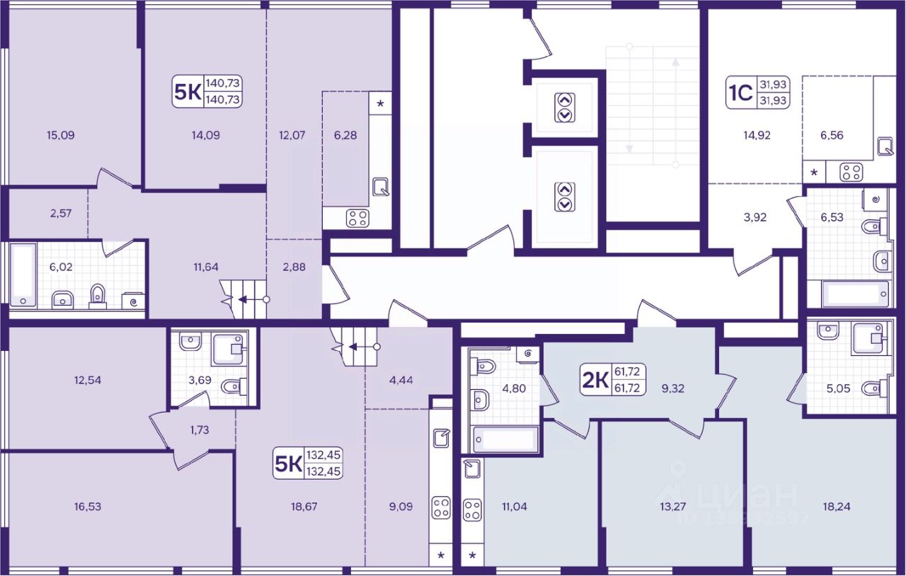 140 м² · Этаж 16 из 17