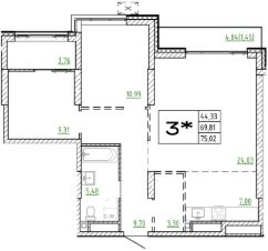 Продаётся 3-комнатная квартира в строящемся доме (Дом 1), срок сдачи: III-кв. 2027, общей площадью 75.02 кв.м., на 13 этаже. Новый жилой комплекс ''Архитектор'' от группы компаний ''Девелопмент-Юг'' расположен по адресу: г. Владивосток, по ул. Бежецкая.