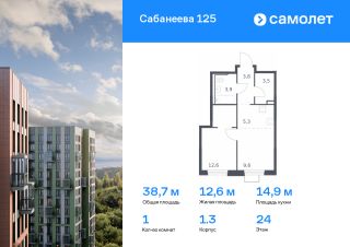 Предлагается 1-комнатная квартира комфорт-класса 38,7 кв.м в корпусе 1.3 на 24 этаже, в ЖК ''Сабанеева 125''Квартира без отделки. Доступность опции ''отделка'' и возможность комплектации мебелью и декором уточняйте у застройщика.Приобрести квартиру возможно по специальным акциям от застройщика, с текущими условиями акций можно ознакомиться в блоке ''Акций''.Цена динамическая и может отличаться, уточняйте актуальность у застройщика. В жилом комплексе ''Сабанеева 125'' вы ежедневно будете наслаждаться видами сопок. Холмистый рельеф защищает территорию от ветра. Комплекс расположен в Первореченском районе Владивостока, всего в 20 минутах на машине до центра города. На первых этажах откроются супермаркеты, кафе и пекарни. Для малышей — детский сад в 2 минутах пешком и школа в 10 минутах.За 6 минут можно доехать до Нагорного парка, а за 15 минут — до набережной Цесаревича с панорамой Золотого моста. Комплекс состоит из 3 монолитных домов высотой 25 этажей с фасадами, дизайн которых вдохновлен птицами Дальнего Востока. Дворы оформлены как сад с дальневосточной флорой, есть смотровые площадки, скалодром, перголы и игровые зоны для детей. Подземный паркинг — трехуровневый. В сквозные подъезды без ступеней и с помещением для колясок удобно заходить.В жилом комплексе ''Сабанеева 125'' есть квартиры с индивидуальными зелеными террасами, увеличенными окнами и панорамными балконами для чаепитий с видом на сопки и залив.