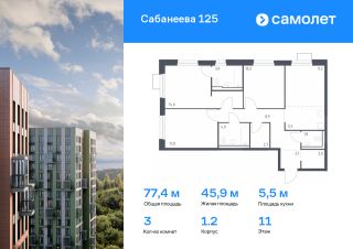 Предлагается 3-комнатная квартира комфорт-класса 77,4 кв.м в корпусе 1.2 на 11 этаже, в ЖК ''Сабанеева 125''Квартира без отделки. Доступность опции ''отделка'' и возможность комплектации мебелью и декором уточняйте у застройщика.Приобрести квартиру возможно по специальным акциям от застройщика, с текущими условиями акций можно ознакомиться в блоке ''Акций''.Цена динамическая и может отличаться, уточняйте актуальность у застройщика. В жилом комплексе ''Сабанеева 125'' вы ежедневно будете наслаждаться видами сопок. Холмистый рельеф защищает территорию от ветра. Комплекс расположен в Первореченском районе Владивостока, всего в 20 минутах на машине до центра города. На первых этажах откроются супермаркеты, кафе и пекарни. Для малышей — детский сад в 2 минутах пешком и школа в 10 минутах.За 6 минут можно доехать до Нагорного парка, а за 15 минут — до набережной Цесаревича с панорамой Золотого моста. Комплекс состоит из 3 монолитных домов высотой 25 этажей с фасадами, дизайн которых вдохновлен птицами Дальнего Востока. Дворы оформлены как сад с дальневосточной флорой, есть смотровые площадки, скалодром, перголы и игровые зоны для детей. Подземный паркинг — трехуровневый. В сквозные подъезды без ступеней и с помещением для колясок удобно заходить.В жилом комплексе ''Сабанеева 125'' есть квартиры с индивидуальными зелеными террасами, увеличенными окнами и панорамными балконами для чаепитий с видом на сопки и залив.