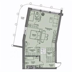 Продаётся квартира свободной планировки в сданном доме (Дом 1), срок сдачи: I-кв. 2024, общей площадью 57 кв.м., на 15 этаже. Жилой комплекс ''Солярис'' представляет собой 25-этажный дом в районе улицы Жигура. Проектом запланировано строительство детских и спортивных площадок, а также зон отдыха. Предусмотрен паркинг. В шаговой доступности от него - магазины, аптека, различные объекты транспортной инфраструктуры, салоны красоты, отделения банков, школы и детские сады.