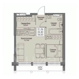 1-к, Босфорский Парк ЖК, 5 Показать на карте
