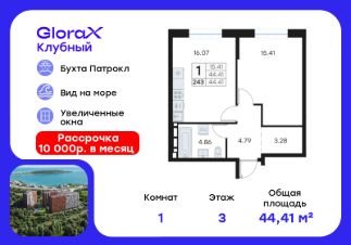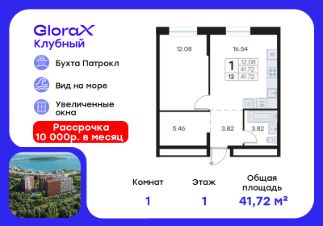 Продается 1-комн. квартира на 3-м этаже в квартале GloraX Клубный. GloraX Клубный - уникальный видовой проект с выделяющейся архитектурой в развитом районе Владивостока. Общая площадь лота составляет 41,69 кв. м, из которых 12,09 кв. м отведено под жилую и 16,51 кв. м под кухонную зону. Номер квартиры - 38.Преимущества квартиры:евро-двухкомнатная квартира, гардеробная.Преимущества проекта:• Квартиры с панорамными видами на бухту Патрокл, маяк Басаргина и остров Русский• Планировочные решения под любой жизненный сценарий от 23 до 67 м²• Гардеробные комнаты, увеличенные панорамные окна, просторные кухни-гостиные• Эксклюзивное благоустройство: продуманное зонирование, игровые и спортивные площадки, площадка для стритбола, амфитеатр• Премиальный дизайн входных групп с лаунж-зоной• Безбарьерная среда, закрытая территория, видеонаблюдение• Лапомойки, колясочные и туалеты на первом этаже• Двухуровневый подземный паркинг на 350 машино-мест с лифтом на жилые этажи• Келлеры на цокольном этаже для хранения сезонных вещей с доступом на лифте• Современный ландшафтный дизайн комплекса от DEREVOPARKGloraX Клубный заповедник в черте мегаполиса. Комплекс тщательно продуман для максимального удобства и обеспечения безопасности его жителей. Квартал расположен в одном из самых современных развивающихся районов города: совсем рядом раскинулась живописная бухта Патрокл, где можно прогуляться по облагороженной пешеходной набережной, заглянуть на пляж или в школу серфинга. Комплекс имеет прекрасную транспортную доступность: рядом проходит объездная трасса СеданкаПатрокл, а до центар можно доехать всего за 15 минут.Проект включает 3 монолитных корпуса, каждый из которых спроектирован с акцентом на комфорт, безопасность и современный образ жизни рядом с уникальной природой. Общий двор создает приватную территорию для житей комплекса.В комплексе предусмотрен двухуровневый подземный паркинг на 350 машино-мест с доступом прямо с жилых этажей. Паркинг оборудован современными системами видеонаблюдения, контроля въезда-выезда и пожаротушения. На цокольном этаже размещаются келлеры для хранения сезонных и габаритных вещей. Доступ к кладовым на лифте с жилых этажей. Современный ландшафтный дизайн жилого комплекса GloraX Клубный создан ведущей российской студией DEREVOPARK. Во дворе для детей всех возрастов предусмотрены различные игровые площадки с лазалками, батутами, качелями и песочницей. В центре расположен специальный ''зеленый остров'', где взрослые могут отдохнуть на качелях и гамаках в тени больших деревьев. Для любителей спорта предусмотрены две специальные спортивные площадки для настольного тенниса и стритбола — для зрителей тоже найдется место! А еще на территории комплекса будет дорожка для роллеров и любителей покататься на велосипеде, самокате или скейте.В шаговой доступности располагаются все необходимые объекты социальной и коммерческой инфраструктуры.Цена указана при