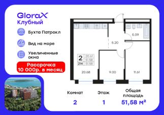 Продается 2-комн. квартира на 19-м этаже в жилом комплексе GloraX Тухачевского — современном проекте нового формата в престижном районе Владивостока. Общая площадь лота составляет 59,76 кв. м, из которых 23,63 кв. м отведено под жилую и 7,38 кв. м под кухонную зону. Номер квартиры - 150.Преимущества квартиры:двухкомнатная квартира, высокий этаж.Преимущества проекта:• Панорамный вид на Амурский залив и зелёные сопки• Удачное расположение и транспортная доступность: Первореченский район, 20 минут до центра города• Закрытая охраняемая территория с доступом только для жителей• Эксклюзивное благоустройство: продуманное зонирование, игровые и спортивные площадки, арт-инсталляция, Тайный сад• Безбарьерная среда, видеонаблюдений, Wi-Fi на территории• Премиальный дизайн входных групп реcепшн и лаунж-зоной• Лапомойки, колясочные и туалеты на первом этаже• Подземный паркинг на 449 машиномест с доступом на лифте с жилых этажей• Индивидуальные кладовые на цокольном этаже от 2 до 10 м2GloraX Тухачевского — это городское пространство нового формата, которое позволяет современным горожанам находить все необходимые атрибуты комфортной жизни внутри своего жилого комплекса. Весь комплекс спроектирован так, чтобы жить здесь было удобно и безопасно: светлые лаунж-зоны и ресепшн на входах в жилые корпуса, эксклюзивный дизайн мест общего пользования и придомовой территории, круглосуточная охрана, видеонаблюдение и даже детский сад в одном из корпусов все, что необходимо современному городскому жителю. GloraX Тухачевского находится в одном из самых престижных районов города с хорошей, давно сформировавшейся инфраструктурой и отличной транспортной доступностью. Отсюда легко добраться до центра города, других районов и даже пригорода как на собственном транспорте, так и на общественном. Квартал имеет прямой выезд на ул. Тухачевского, а рядом с комплексом расположена автобусная остановка на несколько маршрутов.Проект состоит из 3 монолитных корпусов, объединенных единым стилобатом. В комплексе предусмотрены: подземный паркинг с лифтом на жилые этажи, кладовые для хранения, благоустроенный двор без машин, детские и спортивные площадки, зоны для отдыха и прогулок.Эксклюзивный проект благоустройства территории разработан одной из лучших студий ландшафтного дизайна DEREVOPARK с фокусом на комфорт и удобство для всех жителей комплекса.Вся необходимая инфраструктура — магазины, школы, детские сады, остановки общественного транспорта — находится рядом.Узнайте подробности и подберите свою квартиру в GloraX Тухачевского — в отделе продаж уже сегодня.Цена указана при 100% оплате или стандартной ипотеке. Узнайте подробности в Отделе продаж.