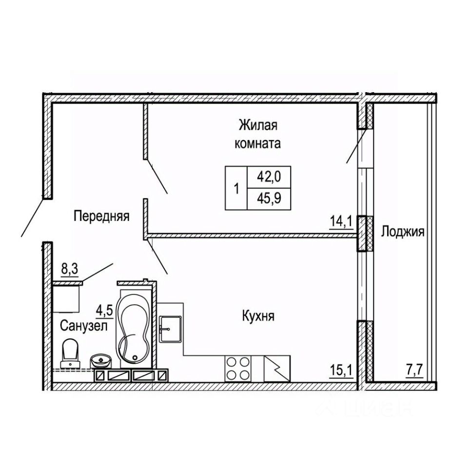 45 м² · Этаж 7 из 24