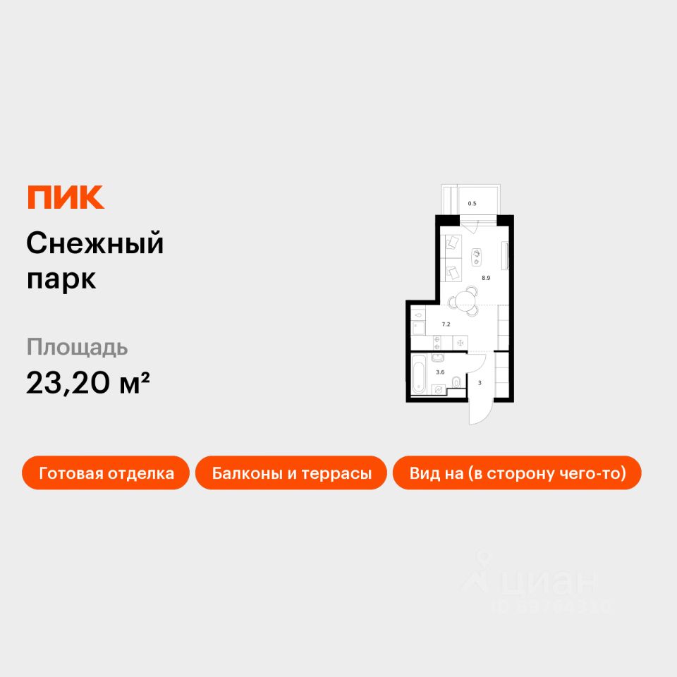 Продаётся квартира-студия площадью 23,2 кв.м на 18 этаже 25 этажного дома (Корпус 4, Секция 2) проекта ПИК Снежный парк. Светлый просторный подъезд на уровне земли, функциональная планировка, большие окна, c отделкой. Жилой квартал ''Снежный парк'' возводится в развитом микрорайоне Владивостока - Снеговой Пади. Рядом уже есть всё для комфортной жизни: 2 школы, детская и взрослая поликлиники, торговый центр и магазины. Проект будет состоять из 7 корпусов, высота которых от 24 до 29 этажей. Благодаря низкой плотности застройки жители будут чувствовать себя комфортно. За счёт переменной этажности в квартиры будет попадать ещё больше естественного света. Из окон последних этажей будет открываться панорамный вид на Амурский залив и лес. В квартирах предусмотрены большие окна, застеклённые балконы и лоджии - будет светло и уютно даже зимой. В жилом квартале появится уникальное общественное пространство с пешеходным бульваром и зонами для отдыха. На первых этажах откроются кафе, магазины и полезные сервисы, куда можно спуститься за горячим кофе или свежеиспечённым хлебом. Из каждого дома будет выход в уютный двор-парк с современными детскими и спортивными площадками. Здесь мы посадим цветы и деревья: будет приятно отдыхать или почитать книгу. Артикул 1050657 (Застройщик ООО ''СЗ ФОРМУЛА-ДВ'')