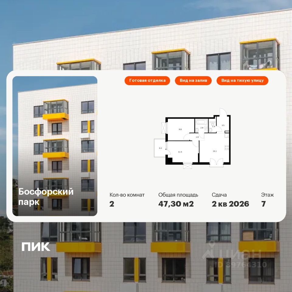 Продаётся 2-комн. квартира площадью 47,3 кв.м на 7 этаже 9 этажного дома (Корпус 4, Секция 1) проекта ПИК Босфорский парк. Светлый просторный подъезд на уровне земли, функциональная планировка, большие окна, c отделкой. Жилой квартал ''Босфорский парк'' расположен на юге Владивостока, в районе живописной бухты Патрокл. Из окон домов будет открываться прекрасный вид на залив и лес. Дорога до центра Владивостока на автомобиле займёт 20 минут. В ''Босфорском парке'' появится 20 жилых корпусов с магазинами, кафе и полезными сервисами на первых этажах. На территории проекта предусмотрены два многоуровневых надземных паркинга. В квартале будет много мест для отдыха и активных игр, три вида парков и даже родник, который будет перетекать в ручей с порогами и препятствиями. На территории парков появятся амфитеатры и террасы. Здесь жители смогут отдыхать, гулять, общаться, учиться или работать на свежем воздухе. На естественных склонах будут обустроены игровые зоны для детей - с горками, сетками, канатами и скалолазными зацепами. Всё это - новый формат благоустройства ''Многоуровневый ландшафт'', который разработан специально для регионов с перепадами высот. Ещё на этапе проектирования архитекторы учли все особенности рельефа, чтобы создать органичное пространство. Артикул 938412 (Застройщик ООО ''СПЕЦИАЛИЗИРОВАННЫЙ ЗАСТРОЙЩИК ПИК-ПРИМОРЬЕ'')