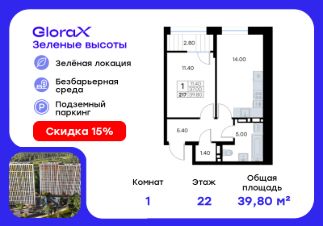 Продается 2-комн. квартира на 23-м этаже в жилом квартале GloraX Зелёные высоты — проекте в тихой зелёной локации. Общая площадь квартиры 57,80 кв. м, из которых 21,40 кв. м включая 21,40 кв. м жилого пространства и 15,00 кв. м кухни. Номер квартиры - 220.Преимущества квартиры:компактная евро-3, вид на лесопарк, лоджия.Преимущества проекта:• Идеальное сочетание городской и загородной жизни• Сдаем в 2025 году• Уютный зелёный район с развитой инфраструктурой• Великолепные виды на Вечнозеленый сквер и лесопарк на 150 Га• Видеонаблюдение, IP-домофон, Wi-Fi на территории,• Дизайнерские входные группы• Безбарьерная среда, колясочные, туалеты на 1 этаже, лапомойки• Эксклюзивное благоустройство территории • Подземный паркинг на 235 машино-мест с лифтом на жилые этажи• Индивидуальные кладовые от 3 до 7 кв. м• Черновая отделка для реализации любых дизайнерских идейGloraX Зелёные высоты — современный жилой проект, сочетающий преимущества городской и пригородной жизни. Комплекс тщательно продуман для максимального удобства и обеспечения безопасности жителей. Квартал расположен в зеленом, живописном и активно развивающемся районе Зеленый Угол, вдали от серой массовой застройки. Жители GloraX Зелёные высоты смогут насладждаться прогулками в Вечнозелёном сквере или лесопарке. В непосредственной близости находятся остановки общественного транспорта и автомобильный подъезд со стороны Нейбута. Скоро также появится выездом на трассу Де-Фриз-Седанка, что обеспечит быстрый доступ в любую часть города и пригород.Проект включает 2 корпуса, каждый из которых спроектирован с акцентом на комфорт, безопасность и современный образ жизни.В комплексе предусмотрен подземный паркинг на 235 машиномест с доступом прямо с жилых этажей. Паркинг оборудован современными системами видеонаблюдения, контроля въезда-выезда и пожаротушения. Цокольный этаж здания отведен под индивидуальные кладовые площадью от 3 до 7 квадратных метров, которые можно использовать для хранения сезонных вещей. Доступ к кладовым - на лифте с жилых этажей.Территория жилого квартала благоустроена и включает игровые зоны и спортивные площадки для детей различных возрастных групп, уютные зоны отдыха со скамейками и универсальную воркаут-площадку для активного досуга.В шаговой доступности располагаются все необходимые объекты социальной инфраструктуры.Узнайте больше в отделе продаж — выберите свою квартиру в GloraX Зелёные высоты уже сегодня!