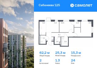 Предлагается 2-комнатная квартира комфорт-класса 53,2 кв.м в корпусе 1.1 на 12 этаже, в ЖК ''Сабанеева 125''Квартира без отделки. Доступность опции ''отделка'' и возможность комплектации мебелью и декором уточняйте у застройщика.Приобрести квартиру возможно по специальным акциям от застройщика, с текущими условиями акций можно ознакомиться в блоке ''Акций''.Цена динамическая и может отличаться, уточняйте актуальность у застройщика. В жилом комплексе ''Сабанеева 125'' вы ежедневно будете наслаждаться видами сопок. Холмистый рельеф защищает территорию от ветра. Комплекс расположен в Первореченском районе Владивостока, всего в 20 минутах на машине до центра города. На первых этажах откроются супермаркеты, кафе и пекарни. Для малышей — детский сад в 2 минутах пешком и школа в 10 минутах.За 6 минут можно доехать до Нагорного парка, а за 15 минут — до набережной Цесаревича с панорамой Золотого моста. Комплекс состоит из 3 монолитных домов высотой 25 этажей с фасадами, дизайн которых вдохновлен птицами Дальнего Востока. Дворы оформлены как сад с дальневосточной флорой, есть смотровые площадки, скалодром, перголы и игровые зоны для детей. Подземный паркинг — трехуровневый. В сквозные подъезды без ступеней и с помещением для колясок удобно заходить.В жилом комплексе ''Сабанеева 125'' есть квартиры с индивидуальными зелеными террасами, увеличенными окнами и панорамными балконами для чаепитий с видом на сопки и залив.