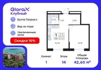 Продается 2-комн. квартира на 14-м этаже в квартале GloraX Клубный. GloraX Клубный - уникальный видовой проект с выделяющейся архитектурой в развитом районе Владивостока. Общая площадь лота составляет 51,35 кв. м, из которых 22,18 кв. м отведено под жилую и 18,28 кв. м под кухонную зону. Номер квартиры - 177.Преимущества квартиры:евро-трехкомнатная квартира, вид на море, высокий этаж.Преимущества проекта:• Квартиры с панорамными видами на бухту Патрокл, маяк Басаргина и остров Русский• Планировочные решения под любой жизненный сценарий от 23 до 67 м²• Гардеробные комнаты, увеличенные панорамные окна, просторные кухни-гостиные• Эксклюзивное благоустройство: продуманное зонирование, игровые и спортивные площадки, площадка для стритбола, амфитеатр• Премиальный дизайн входных групп с лаунж-зоной• Безбарьерная среда, закрытая территория, видеонаблюдение• Лапомойки, колясочные и туалеты на первом этаже• Двухуровневый подземный паркинг на 350 машино-мест с лифтом на жилые этажи• Келлеры на цокольном этаже для хранения сезонных вещей с доступом на лифте• Современный ландшафтный дизайн комплекса от DEREVOPARKGloraX Клубный заповедник в черте мегаполиса. Комплекс тщательно продуман для максимального удобства и обеспечения безопасности его жителей. Квартал расположен в одном из самых современных развивающихся районов города: совсем рядом раскинулась живописная бухта Патрокл, где можно прогуляться по облагороженной пешеходной набережной, заглянуть на пляж или в школу серфинга. Комплекс имеет прекрасную транспортную доступность: рядом проходит объездная трасса СеданкаПатрокл, а до центар можно доехать всего за 15 минут.Проект включает 3 монолитных корпуса, каждый из которых спроектирован с акцентом на комфорт, безопасность и современный образ жизни рядом с уникальной природой. Общий двор создает приватную территорию для житей комплекса.В комплексе предусмотрен двухуровневый подземный паркинг на 350 машино-мест с доступом прямо с жилых этажей. Паркинг оборудован современными системами видеонаблюдения, контроля въезда-выезда и пожаротушения. На цокольном этаже размещаются келлеры для хранения сезонных и габаритных вещей. Доступ к кладовым на лифте с жилых этажей. Современный ландшафтный дизайн жилого комплекса GloraX Клубный создан ведущей российской студией DEREVOPARK. Во дворе для детей всех возрастов предусмотрены различные игровые площадки с лазалками, батутами, качелями и песочницей. В центре расположен специальный ''зеленый остров'', где взрослые могут отдохнуть на качелях и гамаках в тени больших деревьев. Для любителей спорта предусмотрены две специальные спортивные площадки для настольного тенниса и стритбола — для зрителей тоже найдется место! А еще на территории комплекса будет дорожка для роллеров и любителей покататься на велосипеде, самокате или скейте.В шаговой доступности располагаются все необходимые объекты социальной и коммерческой инфраструктуры.Ц