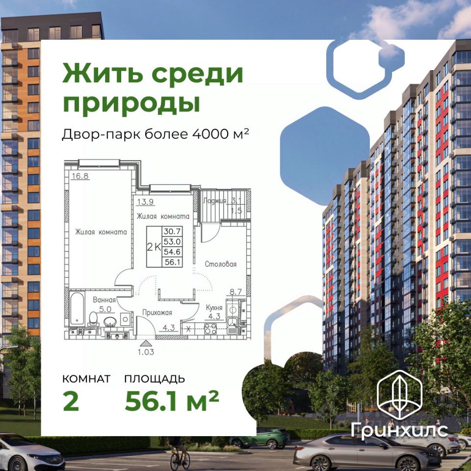 Продается 2-к квартира в ЖК ''Гринхилс''. Отделка - whitebox, санузел - под ключ. Общая площадь квартиры — 56.1 кв. м, этаж 16 из 18. Тип дома — монолитный. Цена указана при 100% оплате. ЖК ''Гринхилс'' — жилой квартал комфорт-класса в выгодной локации микрорайона Зеленый угол: развивающегося современного жилого кластера во Владивостоке, внутри которого реализуются проекты нового поколения, преобразуя город. Полный набор необходимой инфраструктуры, транспортная доступность, исторические места города в шаговой доступности, а также окружение леса — все это и есть современный Зеленый угол. ТРАНСПОРНАЯ ДОСТУПНОСТЬ - 15 минут до центра, - 17 минут до ж/д вокзала, - 10 мин до пляжа Патрокл*, - 30 минут до автовокзала, - 50 минут до аэропорта. *В конце 2025 года планируется ввод дороги, соединяющей район с объездной Седанка-ДеФриз-Патрокл. ПЛАНОВЫЙ ВВОД В ЭКСПЛУАТАЦИЮ - 1 корпуса — 2 квартал 2026 года, - 2 и 3 корпусов — 2 квартал 2027 года. АРХИТЕКРУРНЫЕ И ИНЖЕНЕРНЫЕ РЕШЕНИЯ, ПОВЫШАЮЩИЕ КАЧЕСТВО ЖИЗНИ - Приватный безопасный каскадный двор-парк площадью более 4000м2, спроектирован как отдельный архитектурный объект с зонами, включающими в себя целый комплекс оборудования для детей и взрослых, озеленением и современным освещением, благодаря которому будет приятно гулять и отдыхать во дворе в вечернее и ночное время, - Доступ на территорию всего ЖК только для вас и ваших гостей, - Видеонаблюдение по периметру всего ЖК, безбарьерный доступ в дом с обеих сторон и современная домофония, - Дизайнерская отделка мест общего пользования, чтобы было приятно каждый раз, когда приходишь к себе домой, - Предусмотрено место для консьержа, а также туалеты на первых этажах для вашего комфорта, - Колясочные и три современных лифта c прямым доступом к индивидуальным кладовым и паркингу, - Трехэтажный приватный паркинг в 3-м корпусе: широкие проезды, индивидуальные машиноместа, безопасное и комфортное хранение вашего автопарка. МНОЖЕСТВО ПЛАНИРОВОЧНЫХ РЕШЕНИЙ И ВАРИАНТОВ ОТДЕЛКИ - Студии, 1к, 2к, 3к, 4к и квартиры евро-формата спроектированных по стандарту ''Эргом2етрика'', учитывающие различные сценарии жизни. Для вашего удобства для каждого варианта планировки вы можете выбрать подходящую готовности квартиры: - Без отделки, - Без отделки с выполненной стяжкой пола, - Whitebox — квартира, готовая к декорированию: стены подготовлены дя отделки, проведена электрика с учетом рекомендаций по расстановке мебели и бытовой техники, выровнен пол, в каждой квартире установлена взломостойкая входная дверь, - Whitebox plus — квартира, готовая к декорированию, в которой выполнена полностью отделка санузла, - Квартира с полностью готовой современной отделкой в светлых тонах. Во всех квартирах лоджии имеют панорамное остекление. Для вашего удобства в 1м корпусе открыт демонстрационный этаж, где вы сможете вживую увидеть все варианты отделок квартир. Записывайтесь на показ по контактам в этом объявлении.