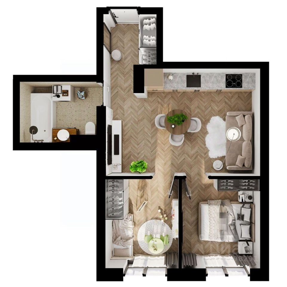 Балкон 4,2 кв.м. с видом на закат для долгих вечеров и уютных посиделок Просторный коридор 5,3 кв.м. с отдельной комнатой под гардероб для освобождения пространства Санузел 4,6 кв.м. с местом под стиральную машину Кухня-гостиная 15,3 кв.м. с выходом на балкон для шумных компаний и тёплых встреч Спальня 11,7 кв.м. с пространством под хранение вещей и рабочей зоной