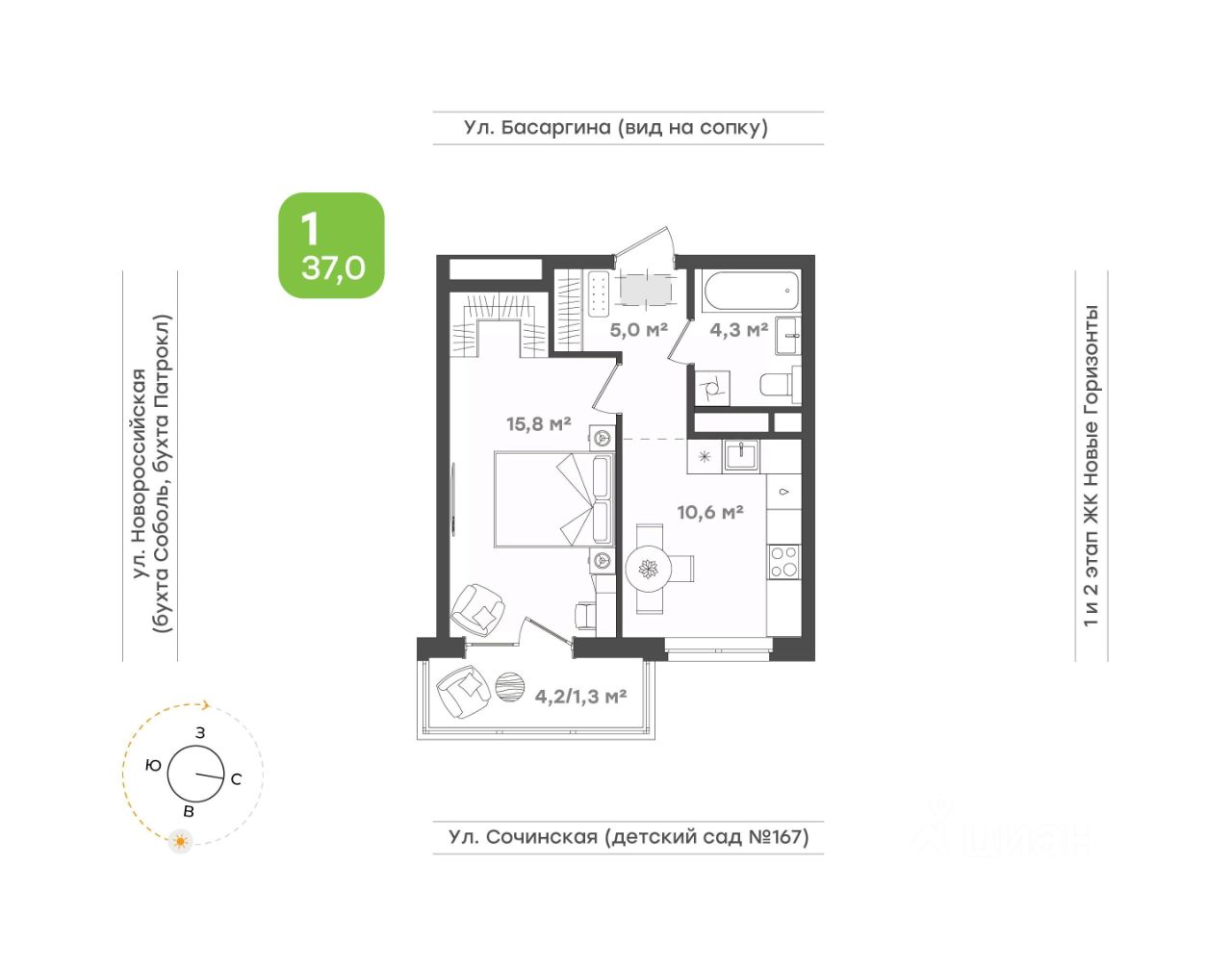 Идеальное пространство для самостоятельной жизни Спальня 15,8 кв.м. с пространством под шкаф-купе и с выходом на балкон На отдельной кухне 10,6 кв.м. можно не бояться готовить ароматные шедевры Коридор 5 кв.м. с местом под шкаф-купе подойдет для дружных встреч и мимолётных прощаний Санузла 4,3 кв.м. хватит и для большой ванны, и для стиральной машины
