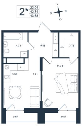 Продаётся 2-комнатная квартира в строящемся доме (Дом 1), срок сдачи: III-кв. 2027, общей площадью 43.68 кв.м., на 7 этаже. Новый жилой комплекс ''Архитектор'' от группы компаний ''Девелопмент-Юг'' расположен по адресу: г. Владивосток, по ул. Бежецкая.