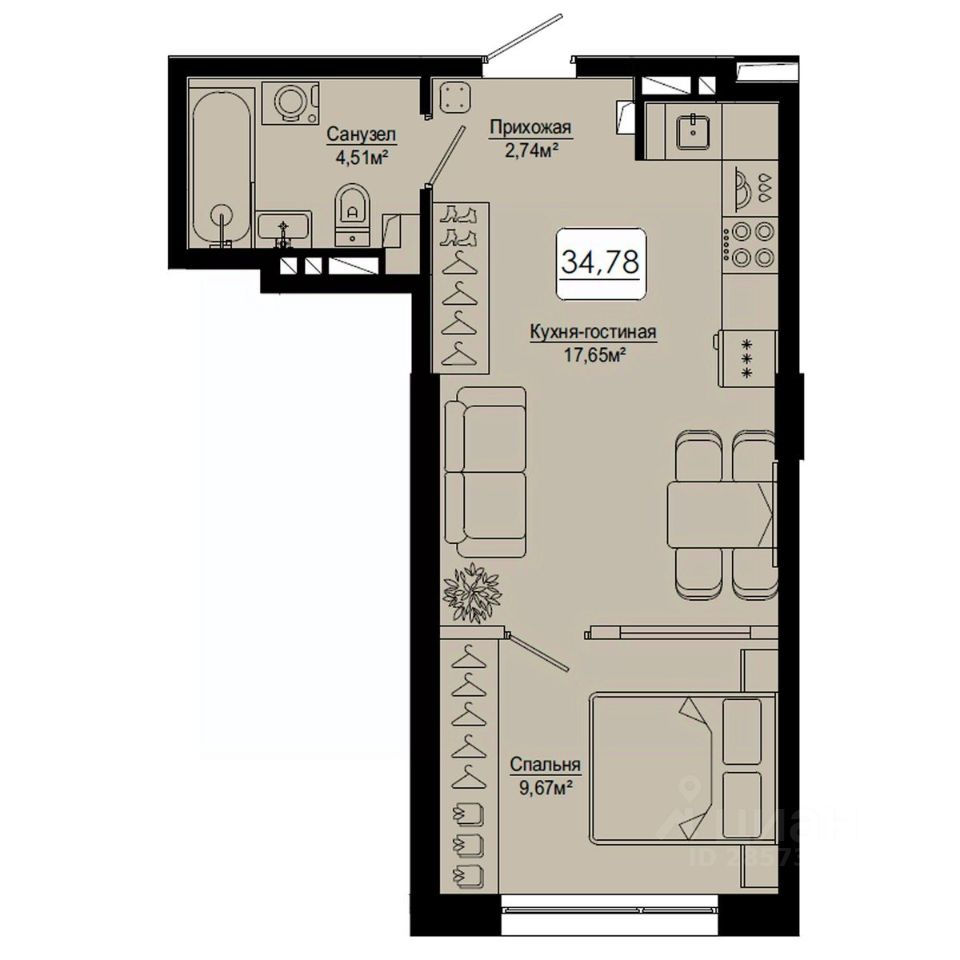34 м² · Этаж 9 из 9