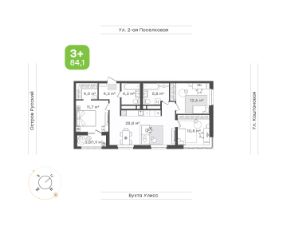 2,5-комнатная с мастер-спальней комфорт для всей семьиПрихожая 3,6 кв.м с местом для шкафаПросторная кухня-столовая 18,2 кв.м с лоджией подойдет как для тихих семейных вечеров за просмотром фильмов в домашнем кинотеатре, так и для шумного приема гостейУютная детская 14,3 кв.м, где можно грамотно разделить зоны для занятий и отдыхаСпальня 13,7 кв.м с собственной ванной комнатой максимальный комфорт для родителейОбщая ванная комната 4,3 кв.м с местом под стиральную машину
