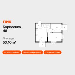 Продаётся 2-комн. квартира площадью 53,1 кв.м на 6 этаже 17 этажного дома (Корпус 1, Секция 1) проекта ПИК Борисенко 48. Светлый просторный подъезд на уровне земли, функциональная планировка, большие окна, c отделкой. ''Борисенко 48'' - небольшой квартал в Первомайском районе, в 15 минутах пути на автомобиле от центра Владивостока. С верхних этажей откроется живописный вид на город и сопки. В проекте всего четыре дома и подземный паркинг, в который можно будет спуститься на лифте. Высота домов от 17 до 30 этажей - благодаря переменной этажности солнце будет лучше освещать двор и квартиры. На первых этажах откроются пекарни, кафе, магазины и другие сервисы - это удобно, когда внезапно закончится хлеб или захочется побаловать себя горячим кофе. Из каждого дома будет выход в уютный двор-парк - это закрытая территория для отдыха, где растут цветы и деревья, оборудованы детские и спортивные площадки. Рядом с ''Борисенко 48'' появится также детский сад для 150 малышей. В пешей доступности есть всё необходимое для комфортной жизни: школы, детские сады, поликлиника и магазины. До крупных торговых центров ''Калина Молл'' и ''Луговая'', а также супермаркета ''Реми'' - всего 5 минут на машине. А до озера на Сафонова, которое отлично подходит для прогулок и отдыха, можно дойти пешком за 9 минут. Живописная Леопардовая набережная - в 10 минутах на автомобиле. Из квартала можно будет выехать как на улицу Борисенко, так и на улицу Сафонова. Артикул 918054 (Застройщик ООО ''СЗ ''Юстина'')