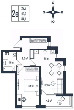 2-к квартира Показать на карте