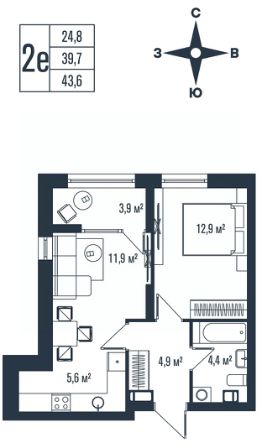 Продаётся 2-комнатная квартира в сданном доме (Дом 1), срок сдачи: IV-кв. 2025, общей площадью 43.4 кв.м., на 12 этаже. Новый жилой комплекс ''Футурист'' от застройщика ''СИК Девеломпент-юг'' расположен по адресу город Владивосток, улица Карбышева.
