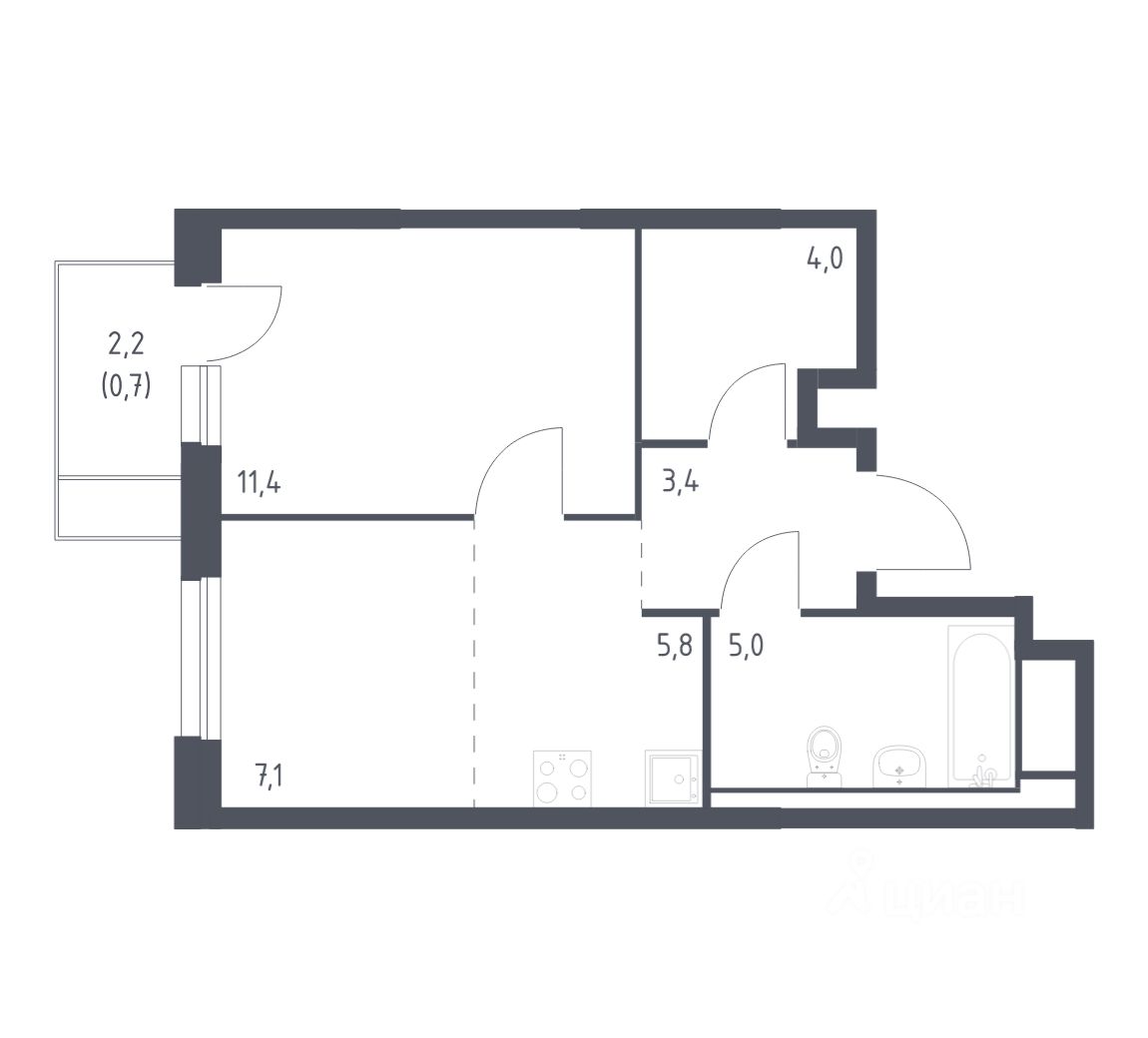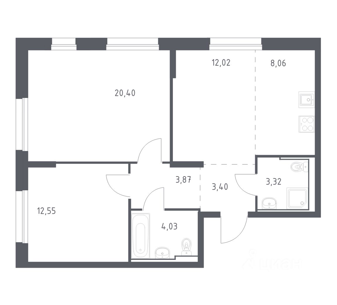 2-к квартира Показать на карте