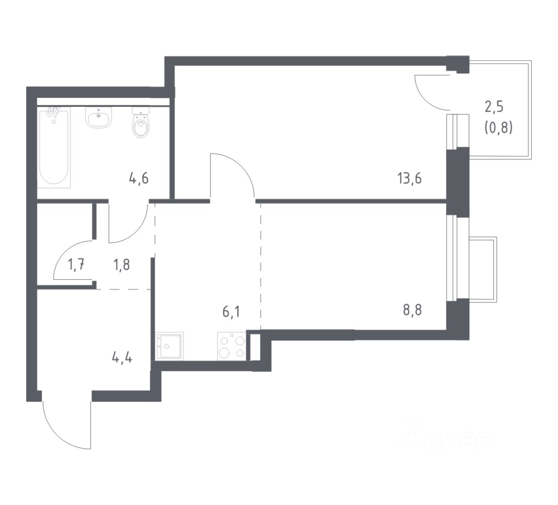 1-к, Сабанеева, 1.3