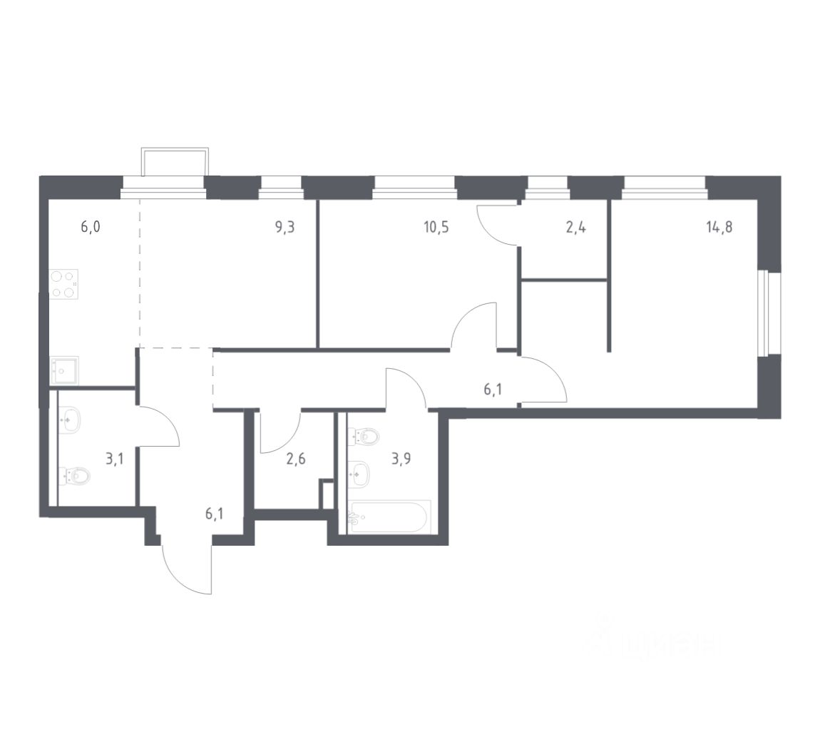 В продаже 3-комнатная квартира в корпусе 3 ЖК 'Сабанеева 125'. Квартира располагается на 9 этаже, общая площадь 77.6 м2.