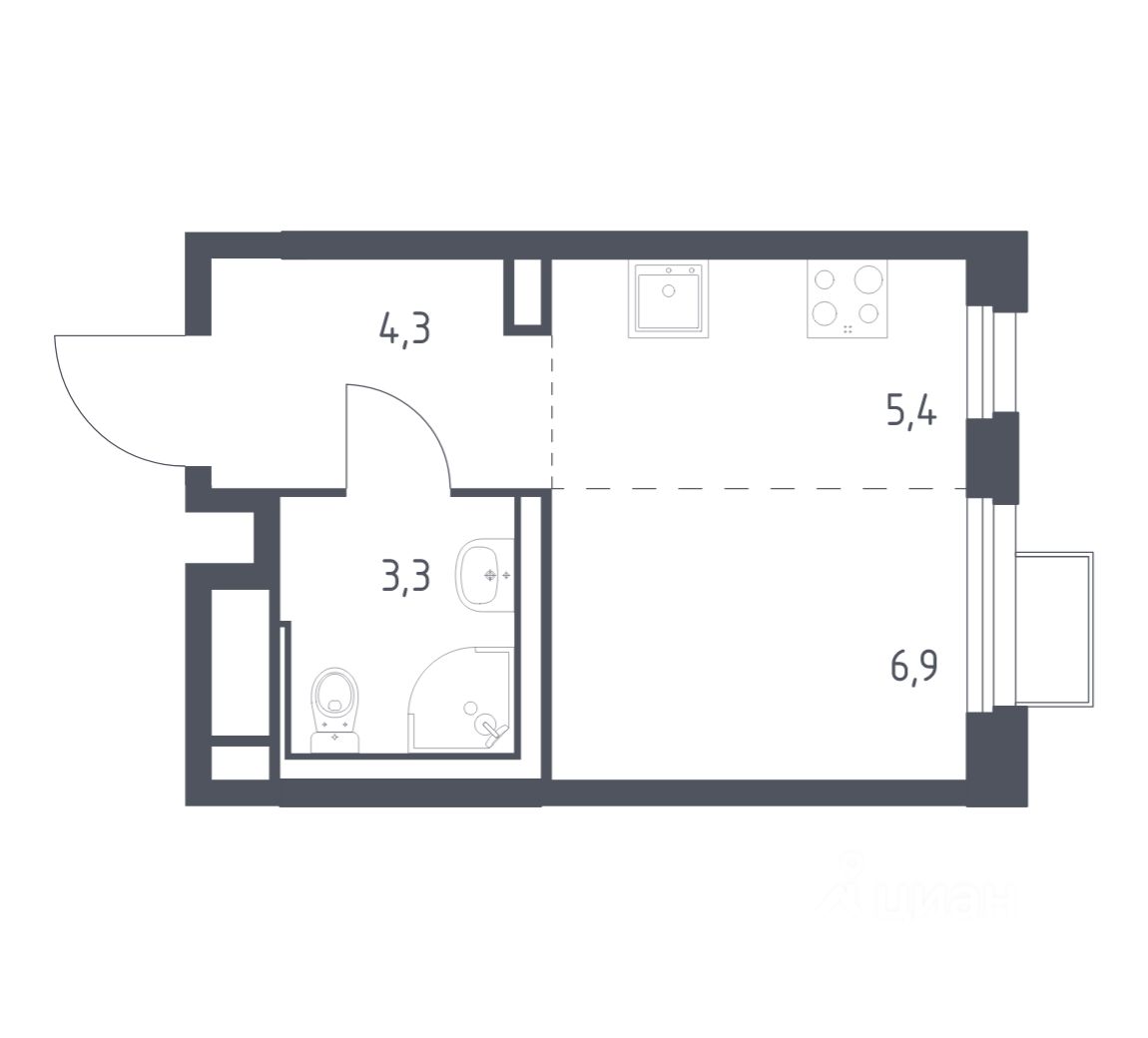В продаже студия в корпусе 3 ЖК 'Сабанеева 125'. Квартира располагается на 3 этаже, общая площадь 19.9 м2.