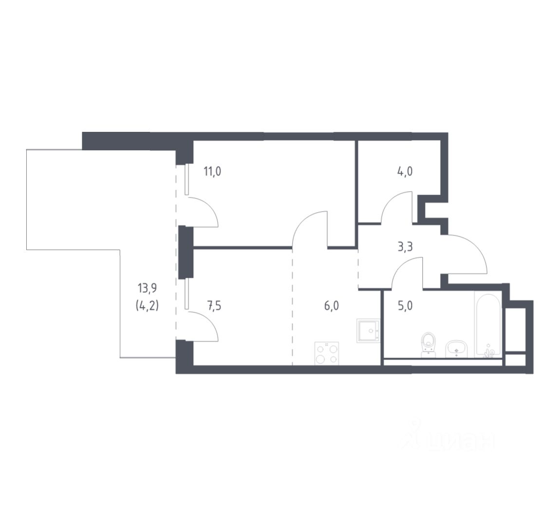 42 м² · Этаж 15 из 28
