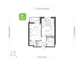 Уютное пространство для самостоятельной жизни Просторная прихожая 5,4 кв.м с местом для шкафаКухня-столовая 16,7 кв.м место для ваших кулинарных экспериментов и отдыха за домашним кинотеатромСпальня 14,7 кв.м с выходом на лоджию, где можно наслаждаться свежим воздухом и красивым видом на окружающий пейзажГардеробная в спальне 2,5 кв.м позволит аккуратно разместить вещи, освободив место в комнатеВанная комната 4,5 кв.м с местом под стиральную машину