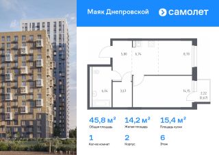 Строим кварталы для жизни с заботой о будущем. Предлагается 1-комнатная квартира комфорт-класса 45,77 кв.м в корпусе 2 на 6 этаже, в ЖК ''Маяк Днепровской''Квартира без отделки. Доступность опции ''отделка'' и возможность комплектации мебелью и декором уточняйте у застройщика.Приобрести квартиру возможно по специальным акциям от застройщика, с текущими условиями акций можно ознакомиться в блоке ''Акций''.Цена динамическая и может отличаться, уточняйте актуальность у застройщика.''Маяк Днепровской'' — это маленький город с домами высотой от 17 до 30 этажей. Мы строим современные здания со стилобатами и террасами, которые отвечают архитектурным трендам, но при этом гармонично вписываются в окружающие пейзажи. Переменная этажность домов повторяет уникальный дальневосточный ландшафт, а оттенки фасадов перекликаются с красками природы. Здесь вы будете любоваться живописными закатами и встречать рассветы с панорамного балкона.