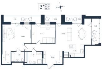 Продаётся 3-комнатная квартира в строящемся доме (Дом 1), срок сдачи: III-кв. 2027, общей площадью 96.13 кв.м., на 3 этаже. Новый жилой комплекс ''Архитектор'' от группы компаний ''Девелопмент-Юг'' расположен по адресу: г. Владивосток, по ул. Бежецкая.
