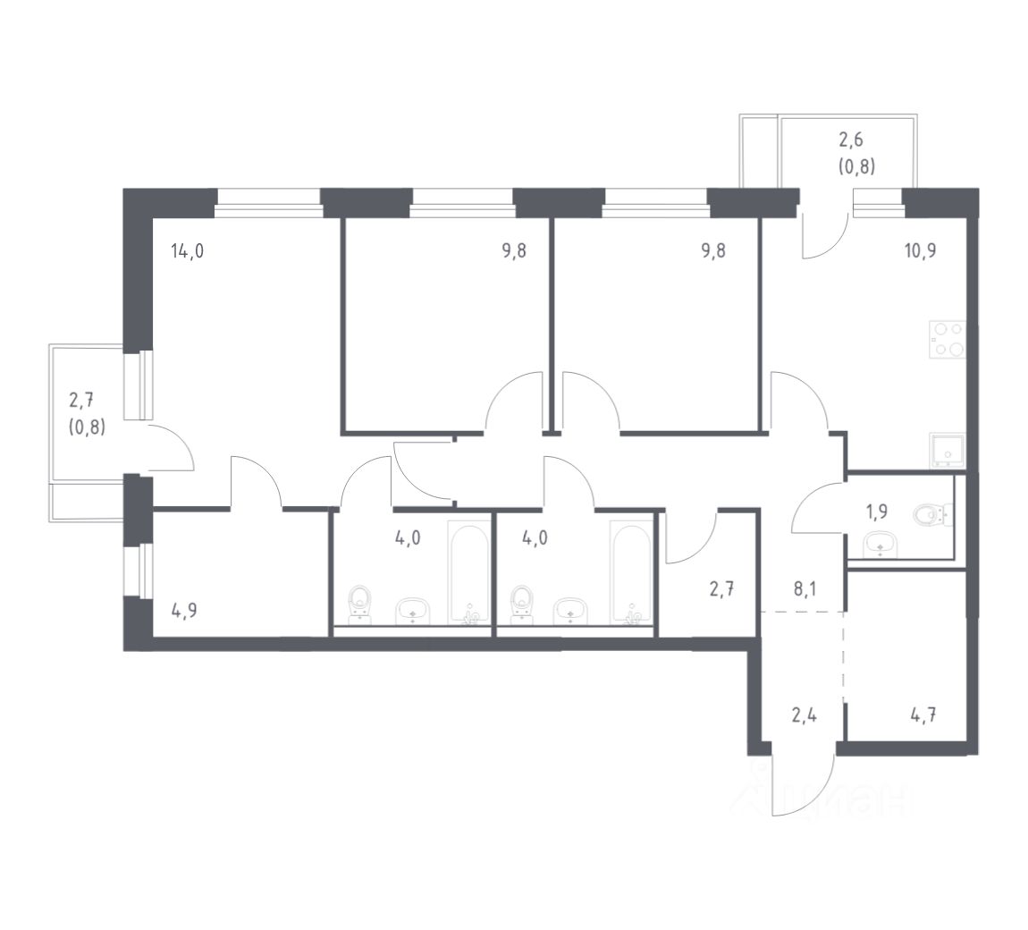 В продаже 3-комнатная квартира в корпусе 3 ЖК 'Сабанеева 125'. Квартира располагается на 14 этаже, общая площадь 79.0 м2.
