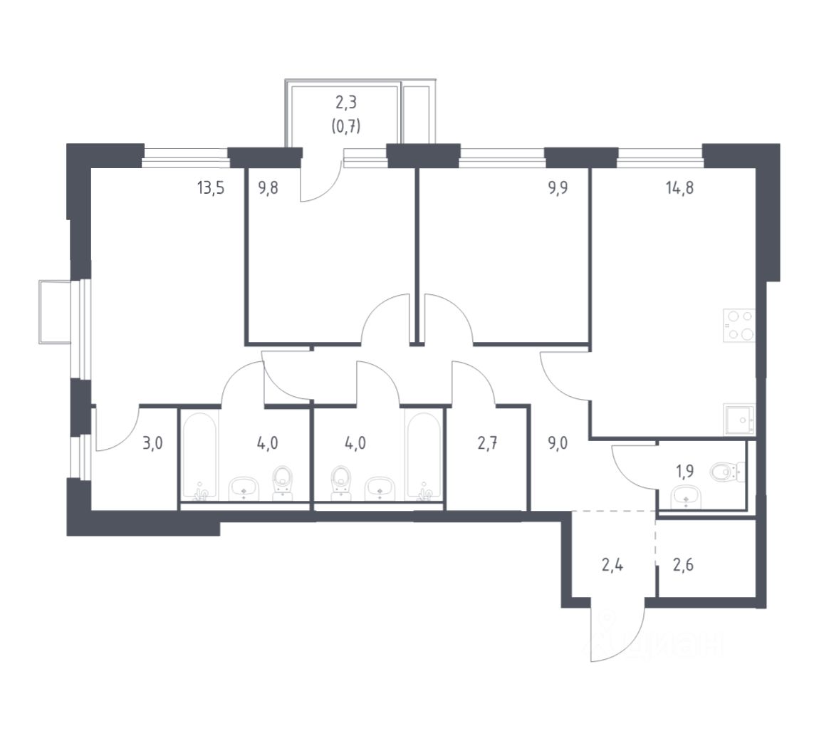 В продаже 3-комнатная квартира в корпусе 2 ЖК 'Сабанеева 125'. Квартира располагается на 9 этаже, общая площадь 77.4 м2.
