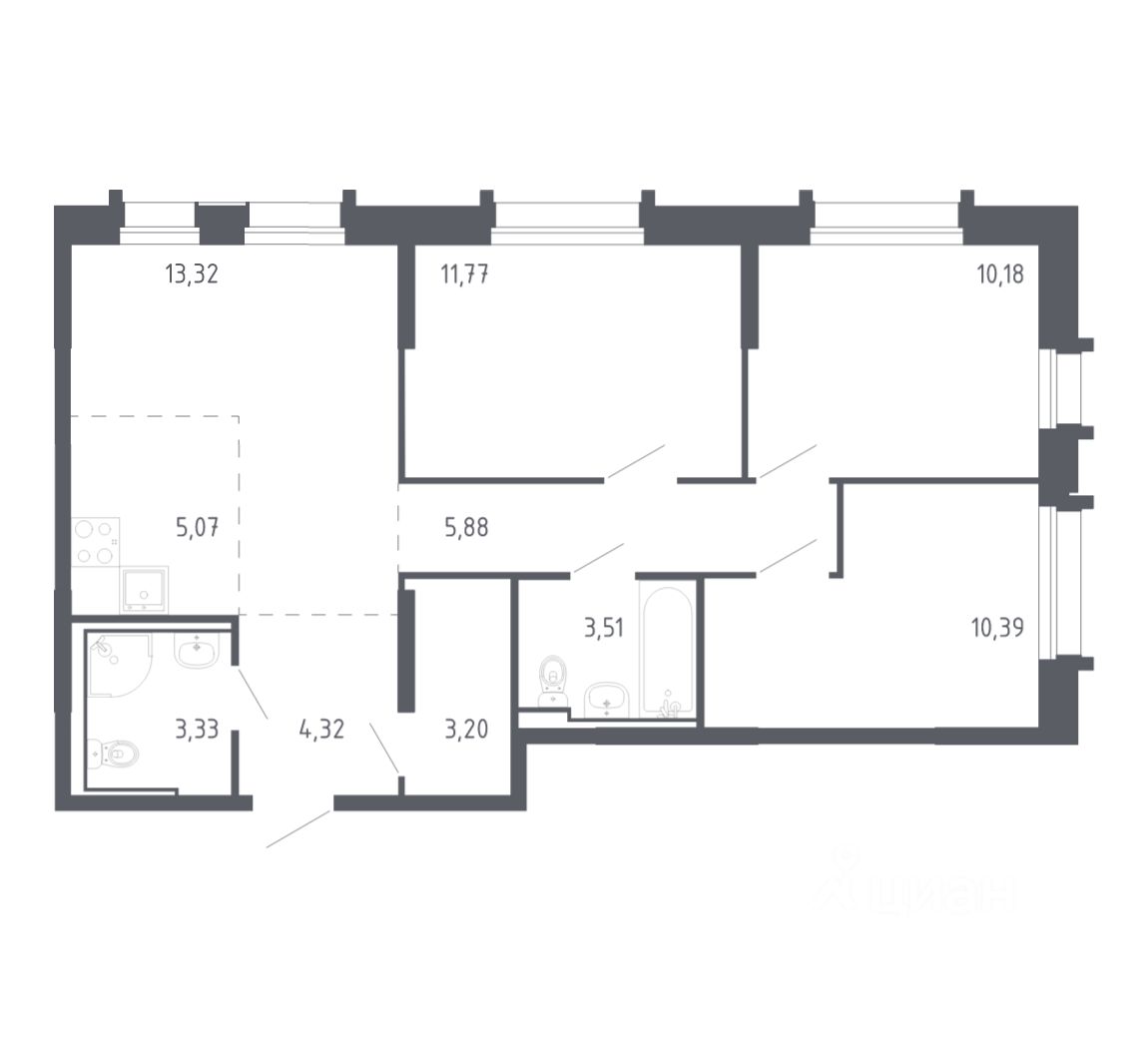 В продаже 3-комнатная квартира в корпусе 2 ЖК 'Сабанеева 125'. Квартира располагается на 19 этаже, общая площадь 77.4 м2.