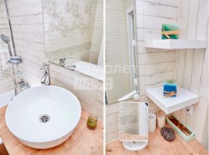 Предлагаем к продаже 1-комнатную квартиру с панорамным видом на город и море, на верхнем этаже 10-этажного панельного дома. Общая площадь 34,8 кв. метров + 2 застекленные лоджии в сумме 6 кв. метров.В прошлом году был сделан качественный ремонт, выровненны стены и пол, постелена кварц-виниловая плитка, сан. узел в керамограните, чугунная ванна с узкими бортами, новая раковина и сантехника. В квартире полностью заменена электропроводка, а также трубы водоснабжения и отопления, установлены новые радиаторы. Одна лоджия капитально отремонтирована, утеплена, заведено электричество, тёплый пол и подсветка. Заменена входная дверь на шумоизоляционную. Установлен кондиционер. Гардеробная оснащена системой хранения. Перепланировок не было. Натяжной потолок по всей квартире. Ремонт сделан продуманно, делали для себя. В покупке квартиры участвовал материнский капитал.Мебель и бытовая техникаПри полной стоимости остаётся Кухонный гарнитур, Вытяжка, Обеденный стол, Диван, Кресло, Стелаж, Журнальный столик, Титан, Кондиционер, Гардеробная система, Стиральная машина. По договорённости холодильник, плита, кровать.Инфраструктура и коммуникацииДом находится в тихом и благополучном микрорайоне с развитой инфраструктурой. Чистый подъезд, ухоженная придомовая территория. Общедомовой счетчик отопления (низкие платежи).Для безопасности в подъездах, лифтах и по периметру дома установлены камеры видеонаблюдения.Рядом с домом магазины, супермаркет Самбери, два детских сада, школа 60, автобусный маршрут 20.Дом отдельно стоящий, без сквозного проезда автомобилей.Агентствам недвижимости просьба не беспокоить.