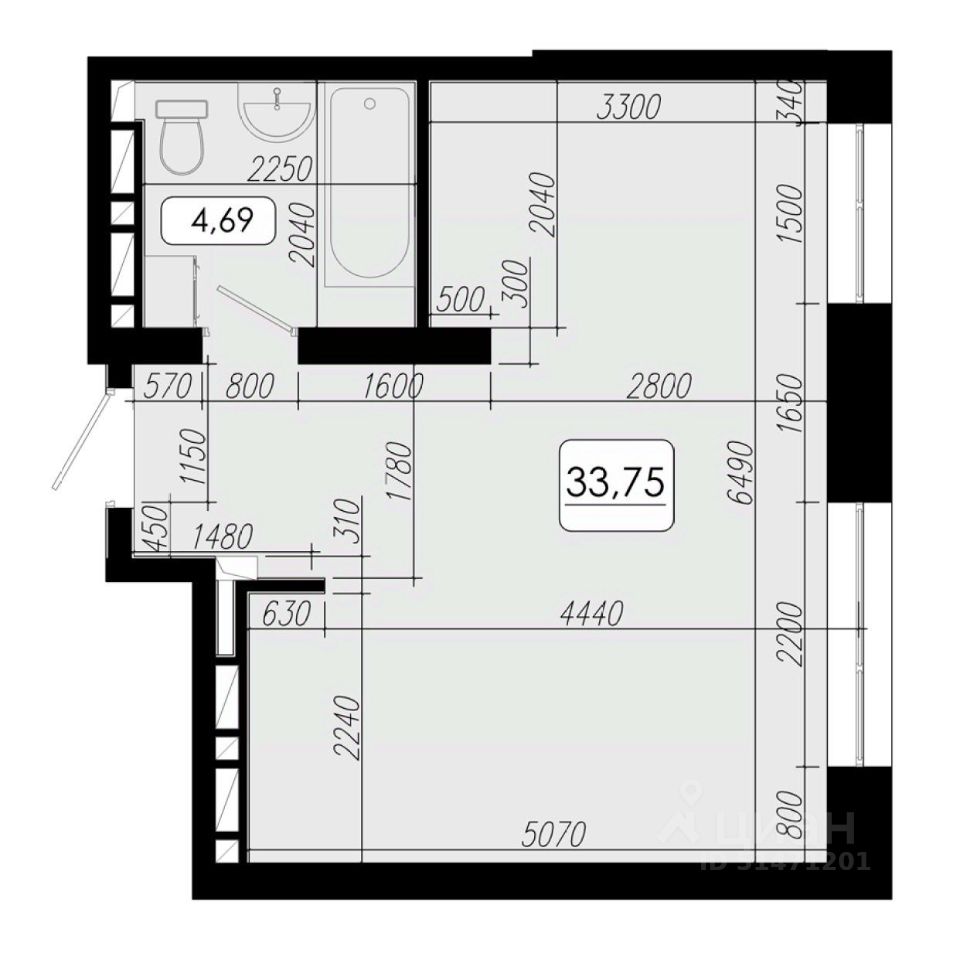 Общая площадь33,75 м2
