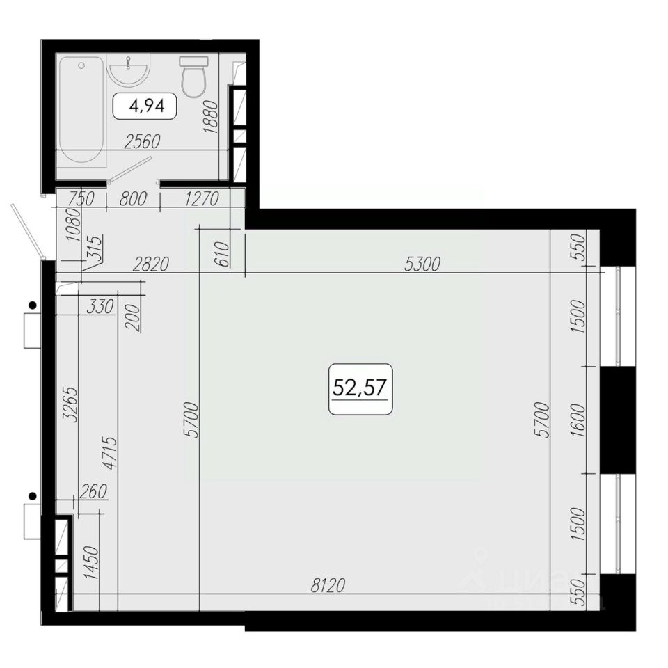 Общая площадь52,57 м2