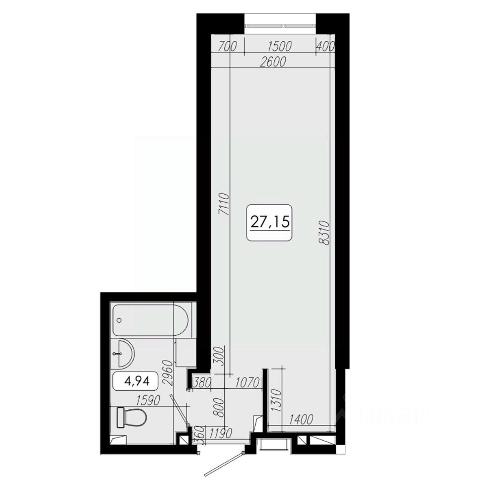 Общая площадь27,15 м2