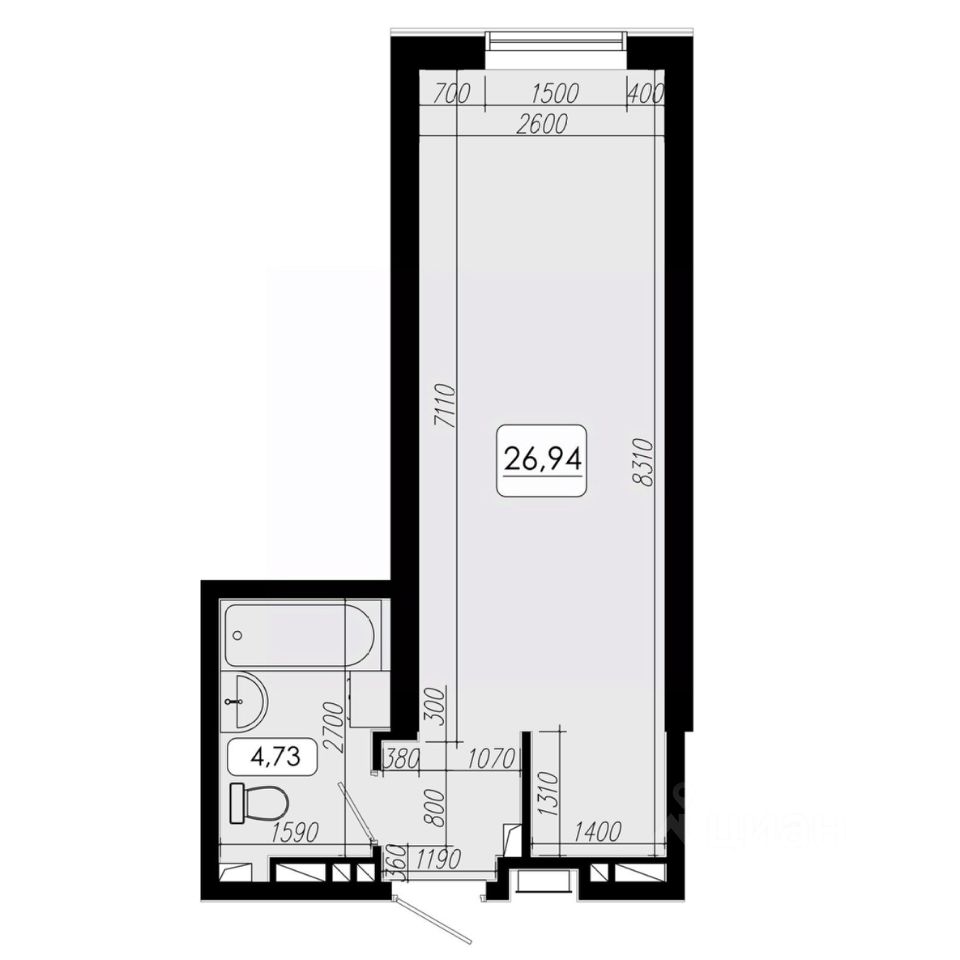 Общая площадь26,94 м2