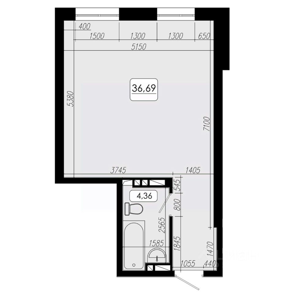Общая площадь36,69 м2