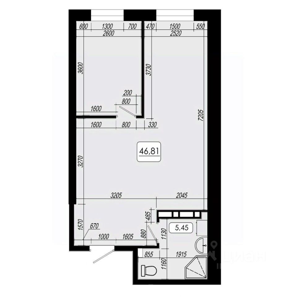 Общая площадь46,81 м2