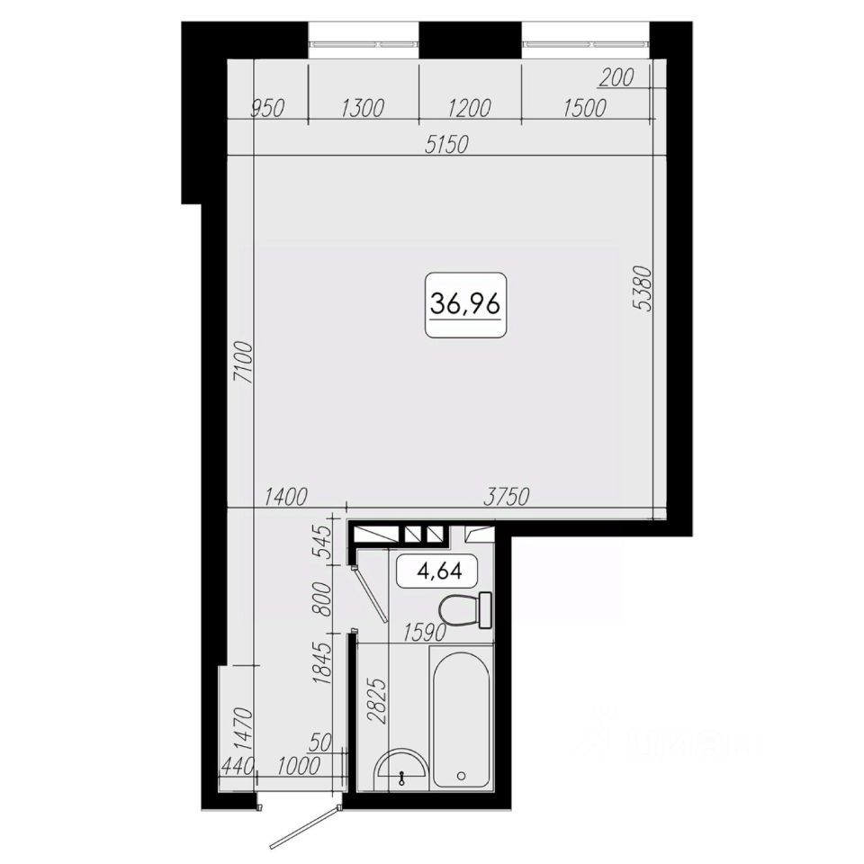 Общая площадь36,96 м2