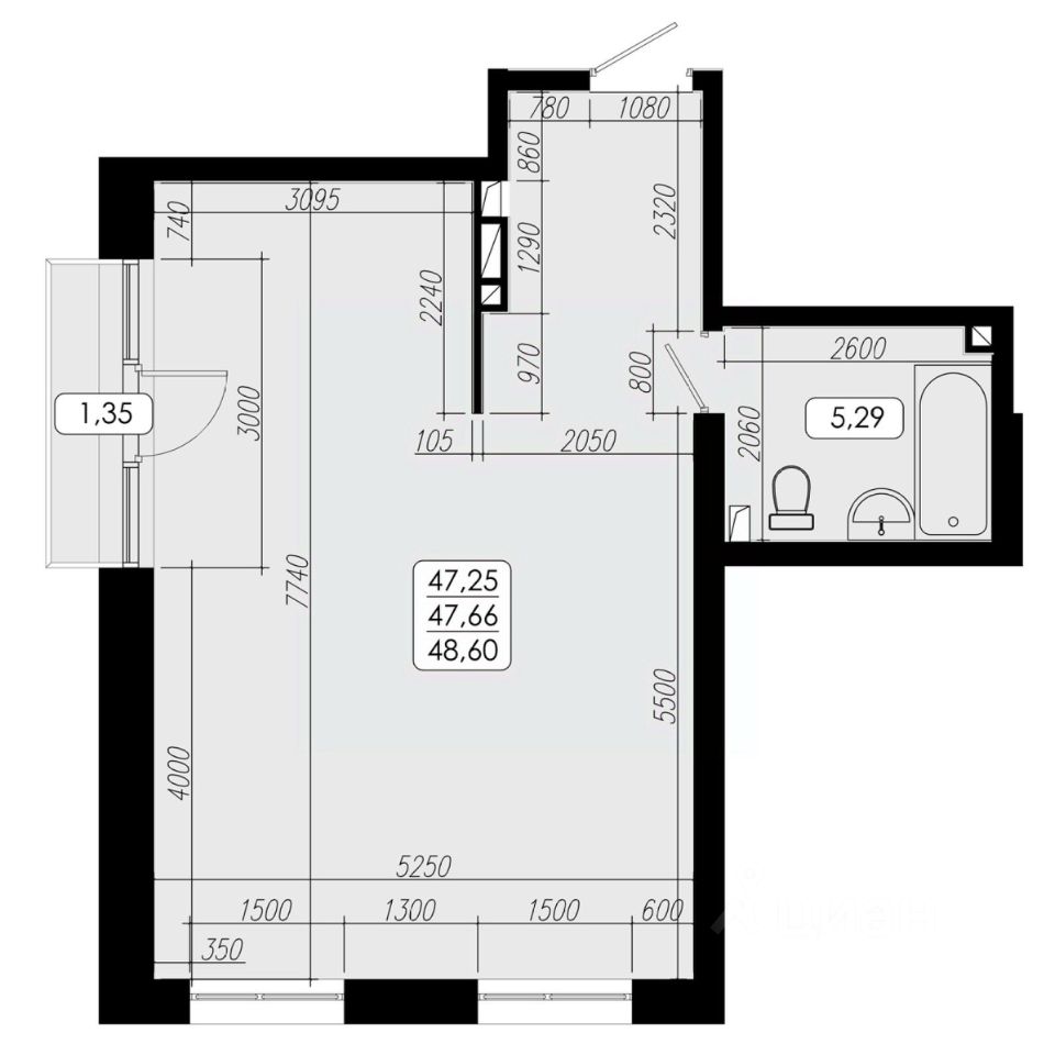 Общая площадь47,66 м2