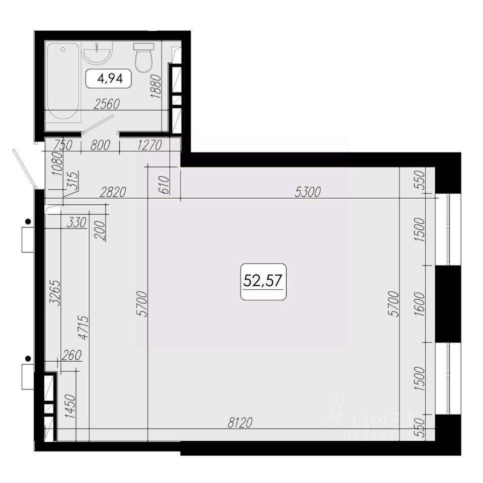 Общая площадь52,57 м2