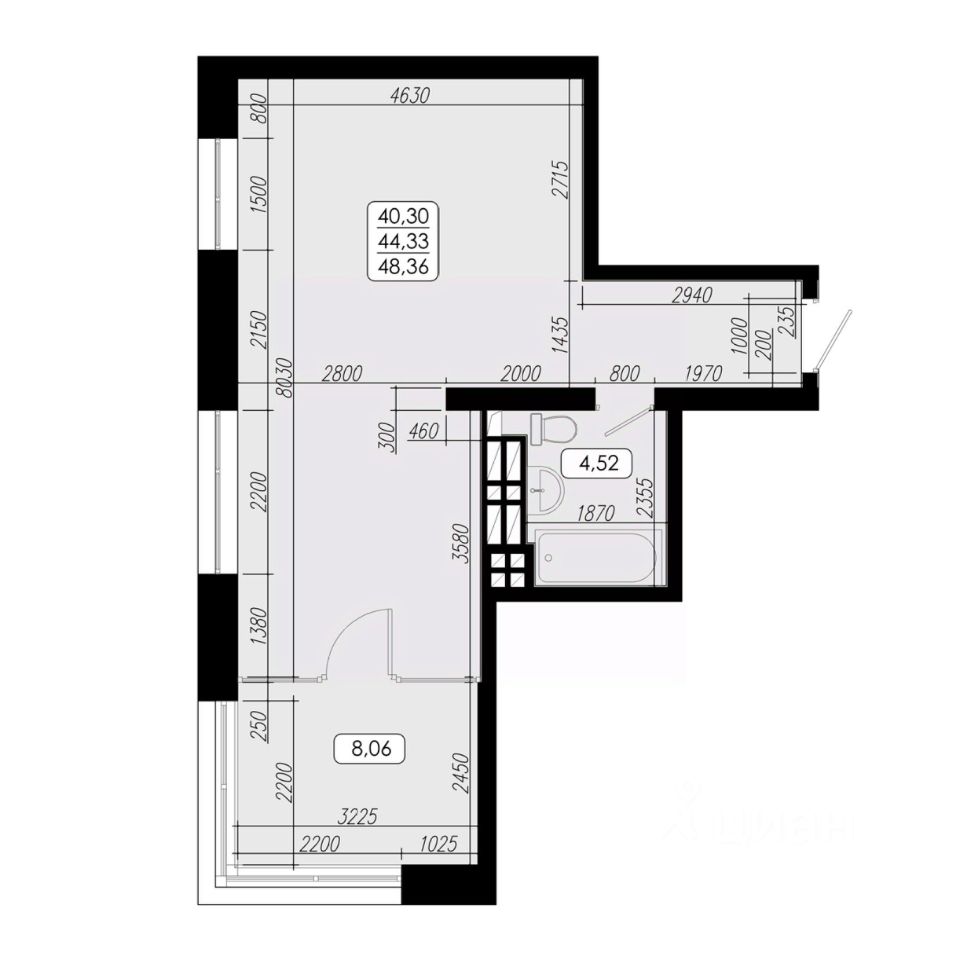 Общая площадь44,33 м2